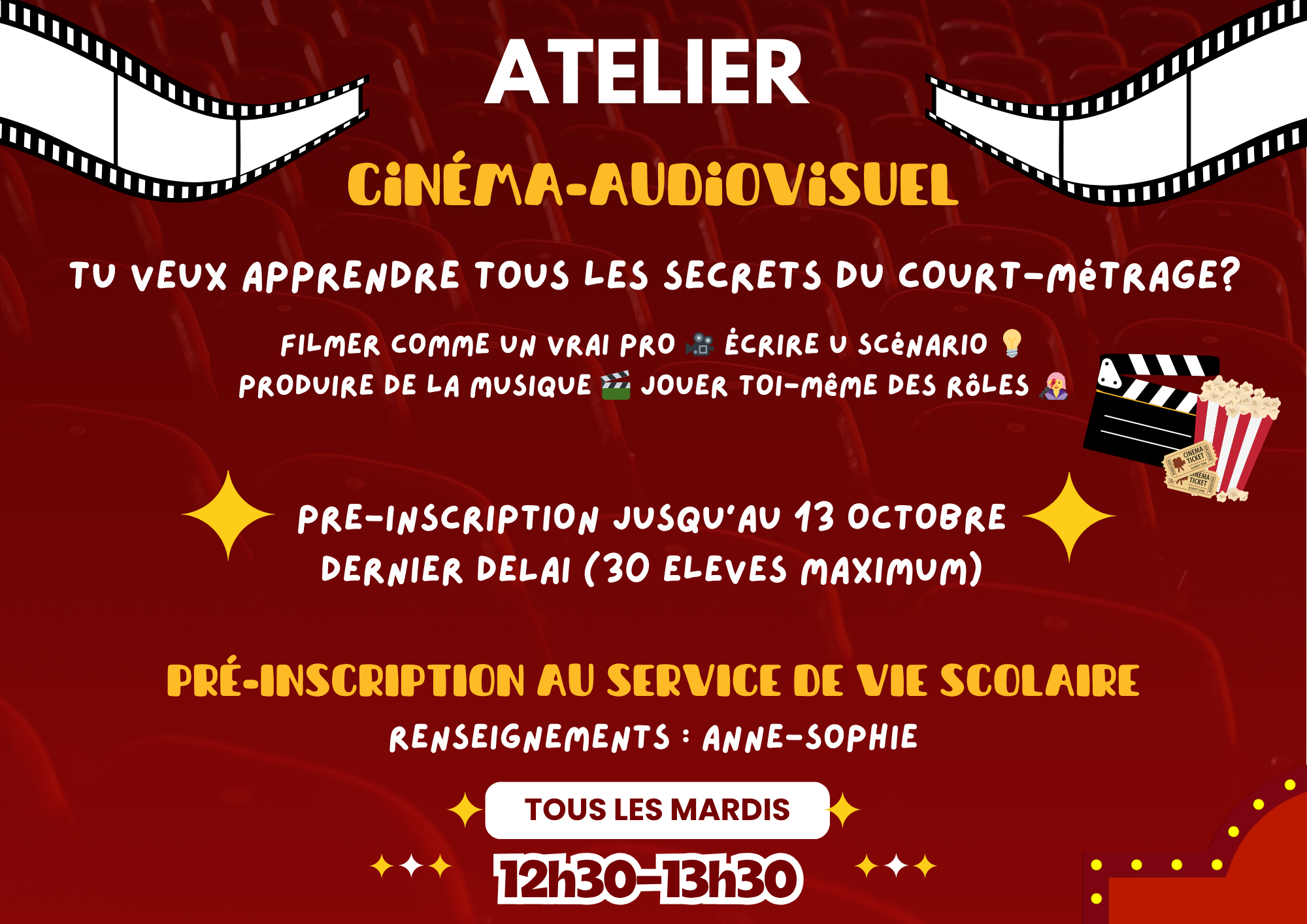👉 Nous avons le plaisir de vous annoncer la création d'un atelier Cinéma Audiovisuel !